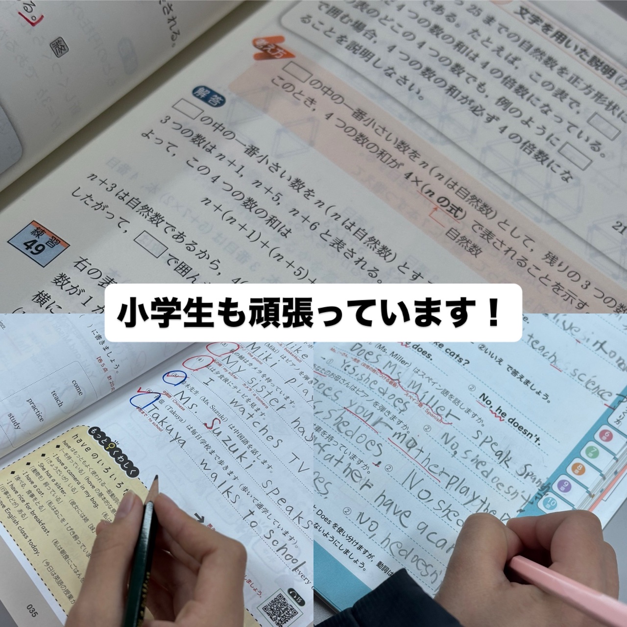 写真に映っているのは小6生が中1数学(文字式)を進めている様子。