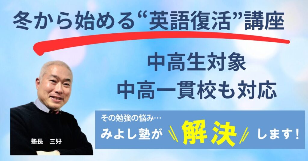 お世話になっております。 みよし塾では英語の学び直しをしたい!と思っている中高生を募集します。 講座参加費:50分×20コマで20,000円(税込22,000円... -